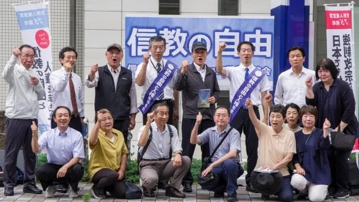 信仰のために立ち上がる:2024年、日本の三重県にて信仰の自由を求めて抗議活動をする家庭連合信徒達。