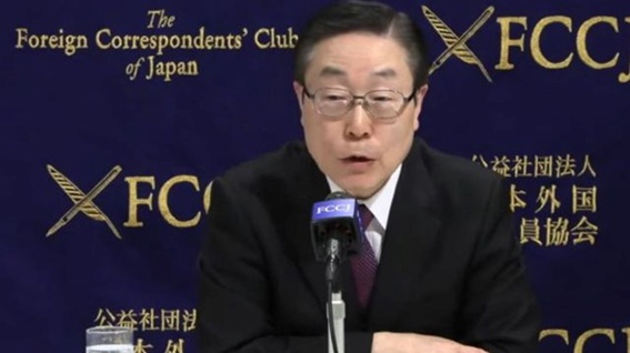 解散決定後の記者会見に臨む、日本の家庭連合の田中富広会長。